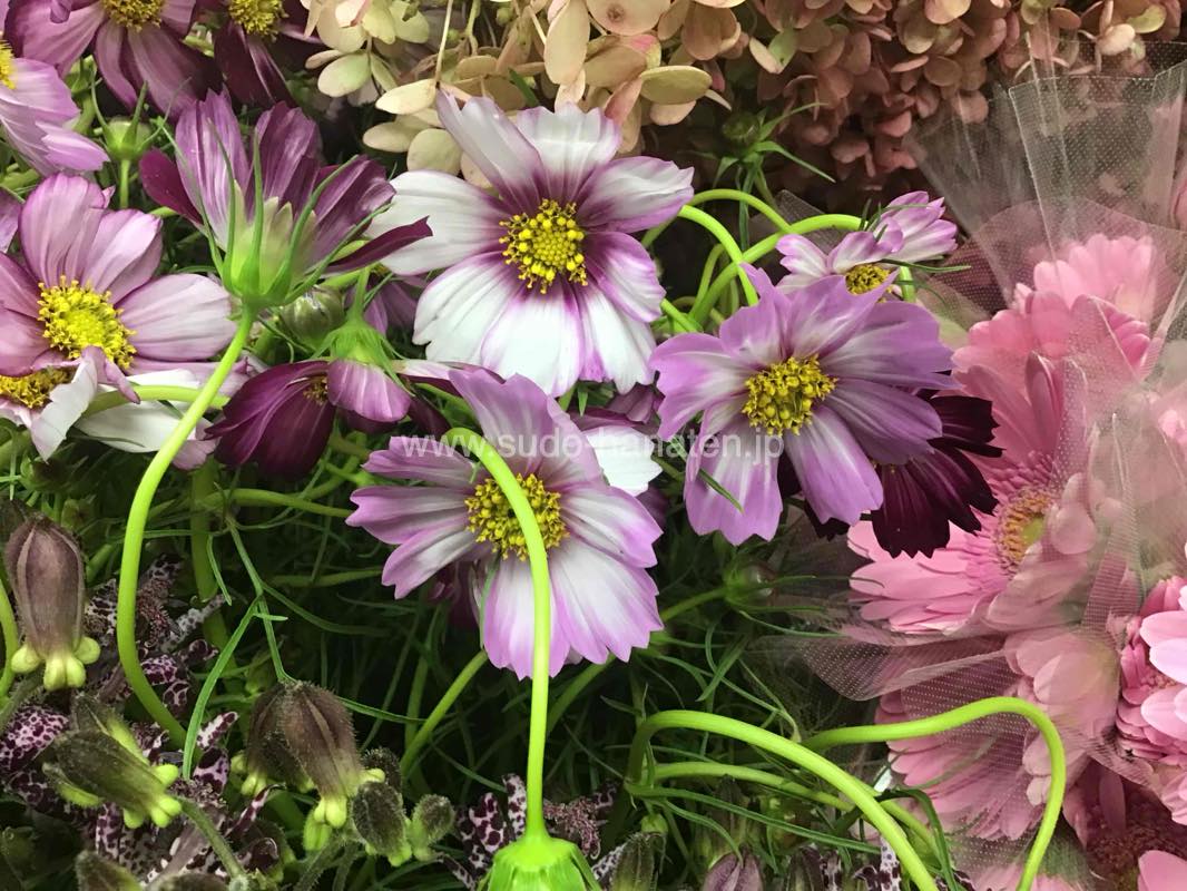 秋を代表する花・コスモスが入荷|ピンクの濃淡が可愛らしい季節の花束に