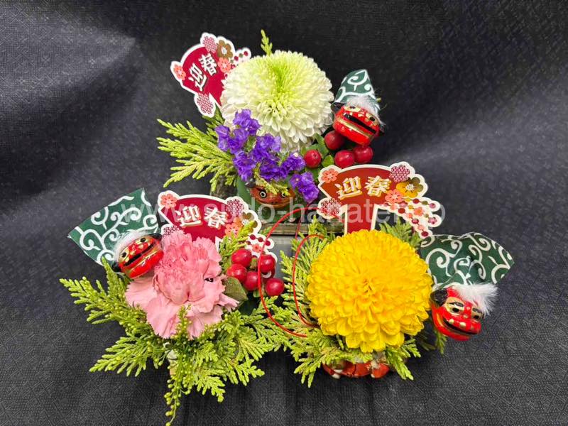 新しい年を迎える準備にぴったりな、手のひらサイズのお正月用アレンジメントの器が入荷しました。